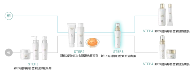 dicila的『新EX白金緊妍』系列便因應女性肌膚的潔淨力而生,以卸妝、潔顏及保養為三大主軸,打造基礎保養的原生能量,實現女性宛如玫瑰般滿溢生命力的肌膚。其中「新EX緹詩娜白金緊妍活膚露」具有豐富的滋潤效果及美白成分,加入精華液般的高機能化妝液,滲入肌膚深層喚醒水嫩透亮的原始美肌;「新EX緹詩娜白金緊妍活膚乳」讓睡眠中的肌膚也能進行再生,賦予肌膚豐盈潤澤,並深入傳導美白有效成分、提升肌膚張力;「新EX緹詩娜白金緊妍防護乳」能隔絕白天的紫外線等外在環境傷害,預防長期處於冷空氣中所產生的乾燥問題,全天候維持肌膚潤澤。同時dicila也了解每個人的肌膚狀況不同,為此貼心地將上述保養產品各自區分成四種相對應的質地供消費者選擇,「水嫩的使用質地」分為「F1清爽的肌膚觸感、F2滋潤的肌膚觸感」;「柔潤的使用質地」為「M1滋潤的肌膚觸感」;「豐潤的使用質地」為「M2滋潤的肌膚觸感」,如此一來,選擇保養品時,可依據自己的膚質找尋符合個人適用的舒適感,又能實質改善肌膚困境並強化保護力。