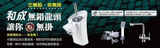 對此,HCG早有防範鉛水隱憂的優質產品。無鉛龍頭系列共有三種材質:不鏽鋼製、銅製,及專利「陶瓷無鉛龍頭」及兩大類,全系列不但採用無鉛銅錠製造,符合台灣CNS 8088標章規範,更將自我標準提升至符合美國NSF-61無鉛規範!不僅外觀採用流線性設計,表面還屬光滑易清洗,不用擔心會留下水痕;更重要的是龍頭表面也採用了奈米級的釉藥處理,添加銀離子配方,能夠有效抗菌。