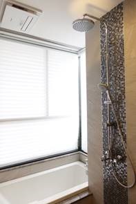 在居家裝潢方面,《力璞玉》也貼心考慮到全齡化的需求,例如浴缸的高度較矮,長輩或小朋友可先坐在浴缸側邊,再慢慢進入裡面泡澡,蓮蓬頭高度也可依個人需求調整。此外,為免浴室潮濕、不易乾燥,造成鏡面及牆面產生水垢及黑斑,變成黴菌的溫床,影響家人的健康,浴室特別裝設有五重安全裝置的Panasonic暖風機,不僅讓浴室可隨時處於乾爽狀態,不用擔心梅雨或反潮的問題,冬天更衣時也不易受寒,尤其在沐浴前、後打開,吹送暖風可減少溫差,預防長輩心血管突發,或小朋友感冒的情形發生。