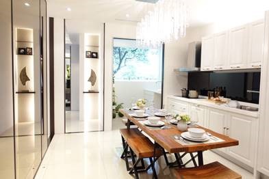 無論二房或是三房規劃,客廳空間都非常寬敞舒適,且從客廳到臥房都有大片的窗戶,所以採光及通風性都很好。此外,開放式廚房及飯廳還設有六人座餐桌,全家人可一起吃飯話家常,分享當天生活的點滴,即使在備餐或清理碗盤時,也可指導小孩寫功課。處理完家務後,可坐在一旁陪伴或看書報雜誌,一起討論、互動,讓彼此的情感更凝聚。